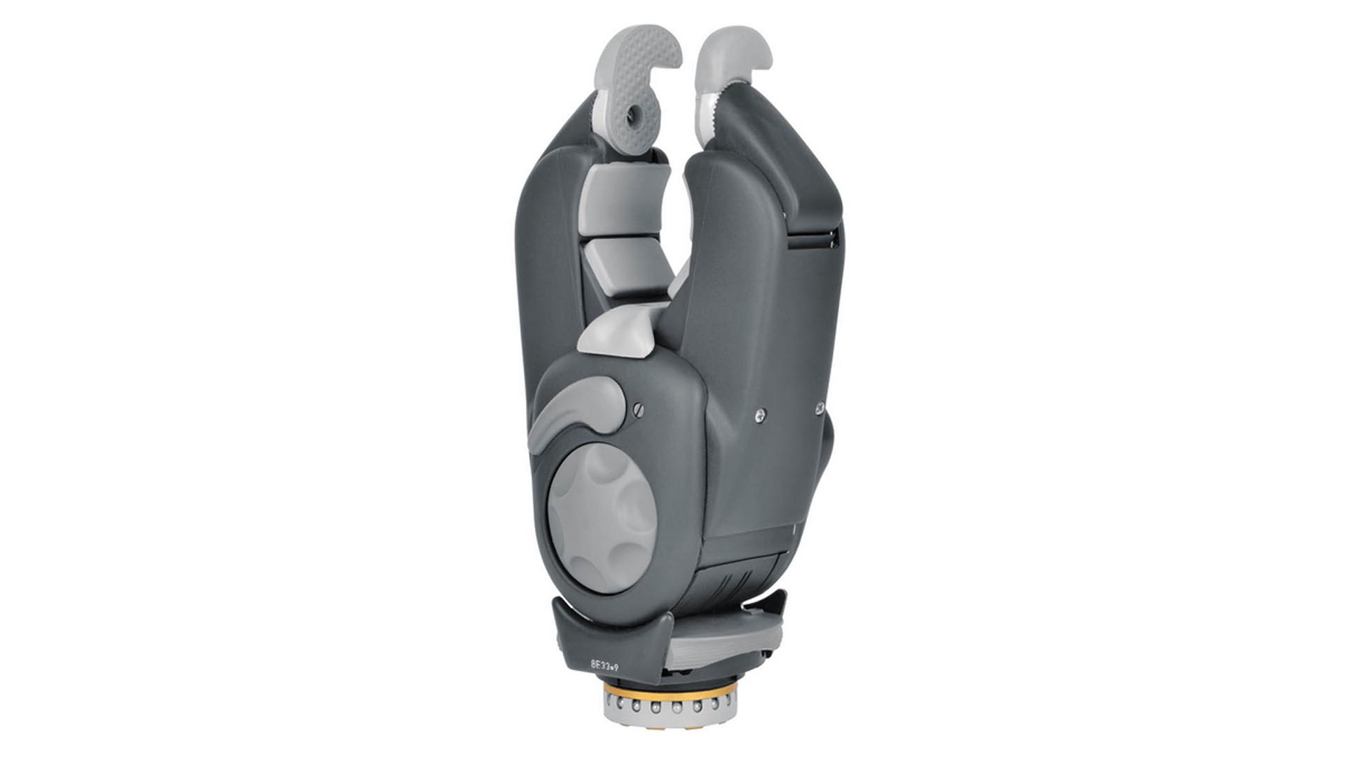 遠位部分は平行移動するようになっており、最大開き幅までのサイズであれば、どの大きさの角材でも安定して保持できる。比例制御を使用した際は、把持のスピードと力が筋電シグナルの強さに比例する為、デジタル制御と比較し生卵など壊れやすい物を柔らかく握る動作も容易になる。ハンド型と比較し近位関節での不自然な代償動作が減少する。 |