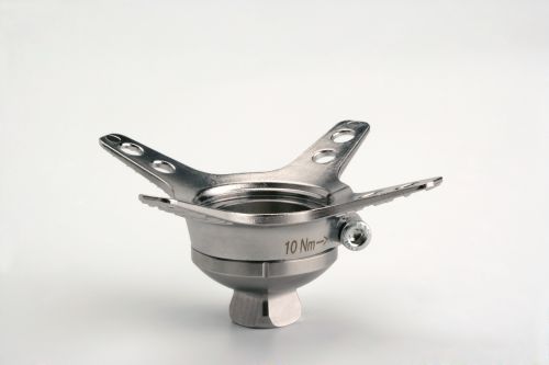 アンカー部と下部モジュールとの間で回旋の調整が可能。下部モジュール遠位に接続する部品のピラミッドメスに組み込まれた4本のアライメント調整ネジによって、アライメント調整が可能。 |