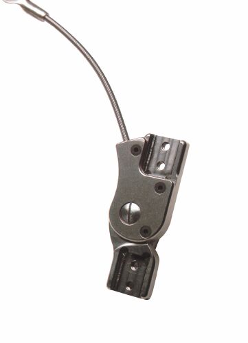 単軸オフセットの膝継手に、固定のロックと解除のためのケーブルから構成。ケーブルを引っ張ることにより、継手内部の楔(くさび)が移動しロックが解除される構造。完全伸展位になると楔(くさび)によるロックがかかる構造。ケーブルはモジュラータイプのため、支柱は別途連結して使用する。下腿内側にカーブが付いているため、身体形状に合わせやく装着感・外観性に優れる。 |