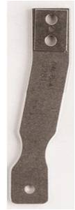 モジュラータイプ装具のラミネーション用の支柱として、各継手とネジなどで連結して使用するための2箇所の穴が一端に設けられている。反対端は1箇所穴が設けられており、テーパ状に加工されている。補強材と連結してカシメなどで固定することができる。膝継手連結部分直下よりオフセット形状となっているため、下腿の形状に合わせやく装着感・外観性に優れる。 |