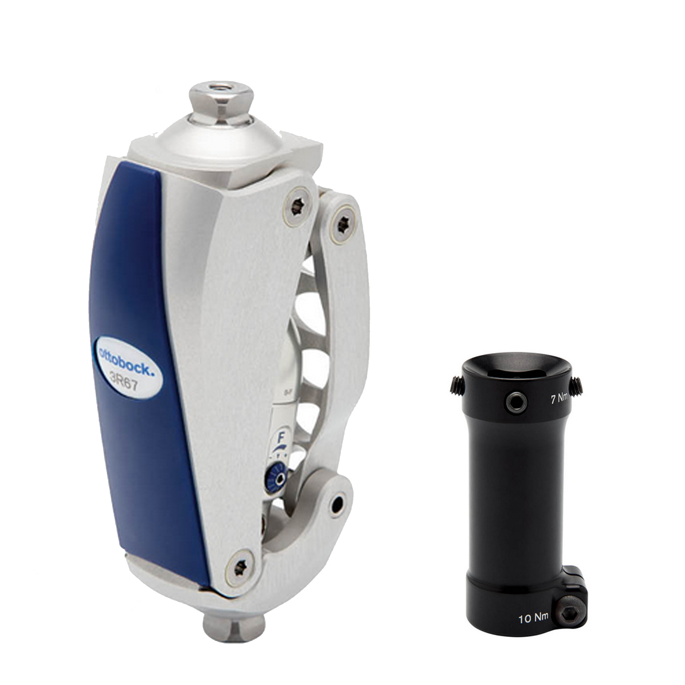 油圧シリンダー部分にある調整ネジにより、伸展と屈曲の油圧抵抗を個別に調整することが可能。 |