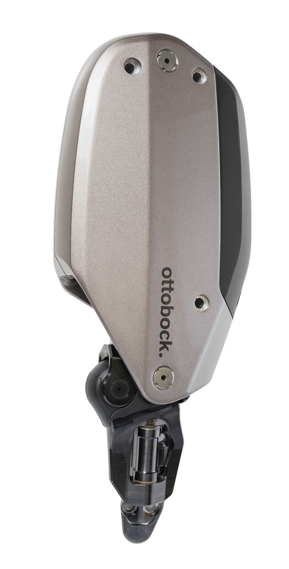 3Dセンサー、マイクロプロセッサ、油圧シリンダーを内蔵する。専用のジグ使用のもとラミネーションして製作された長下肢装具に取り付けて使用する。 |