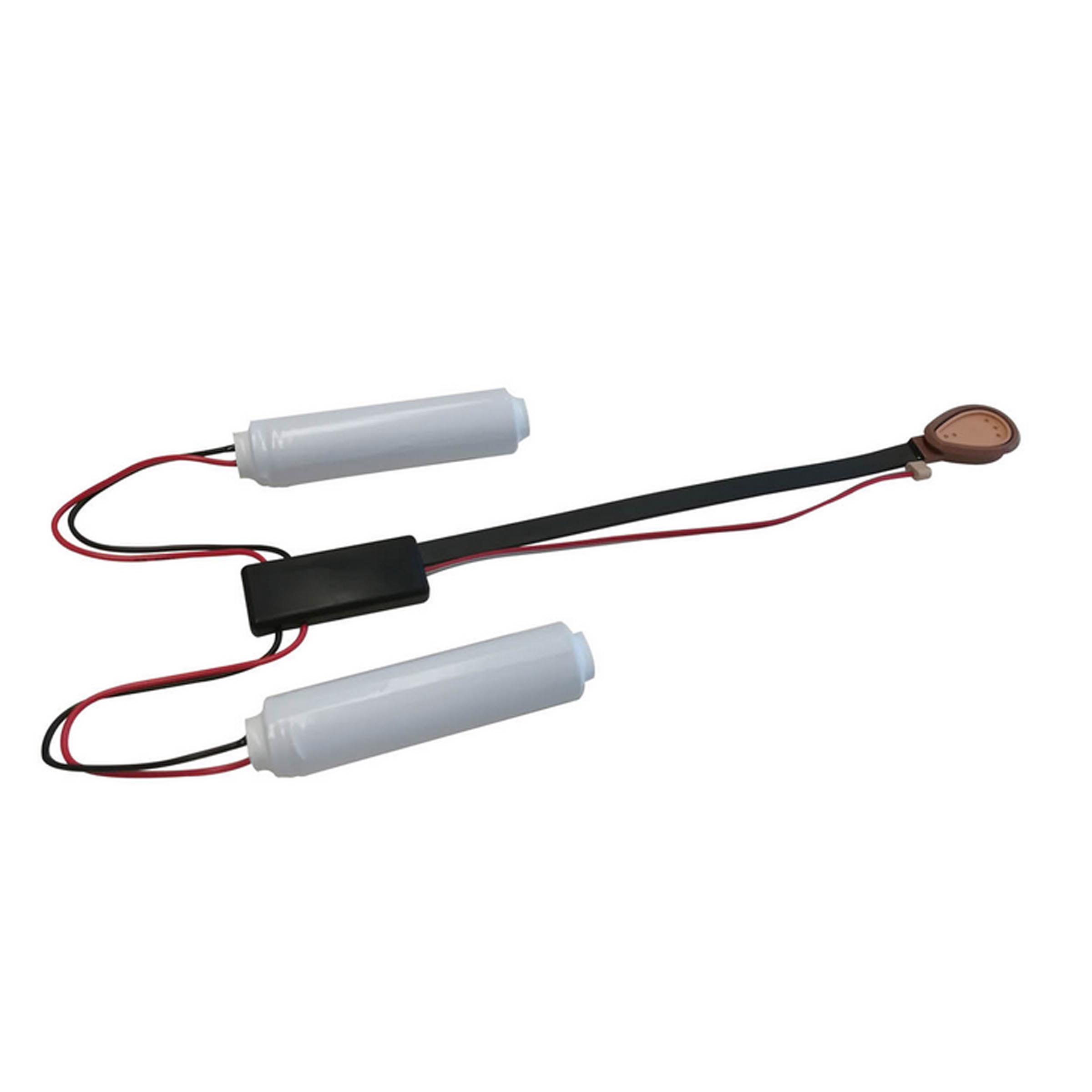 小型バッテリーがケーブルで連結されている。制御パーツへの接続用ケーブル、および、しずく型のスイッチで構成される。充電式バッテリー。757L35充電器との組合せで充電を行う。筋電義手システムのスイッチも兼ねている。 |