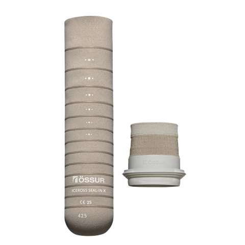 断端に接するライナー内面の素材はシリコーンであり、これが皮膚に密着することによりライナーの懸垂を得る。また、ライナー表面には遠位端から数センチ程度上方にシール部がとりつけられ、このシール部がソケット内壁に密着することによって、ソケットの懸垂を得る。表面には耐久性を向上させ、引き延ばしを防ぐ布カバーが取り付けられている。 |
