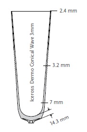 厚さ :断端末14.3mm、遠位7mm、中間3.2mm、近位2.4mm