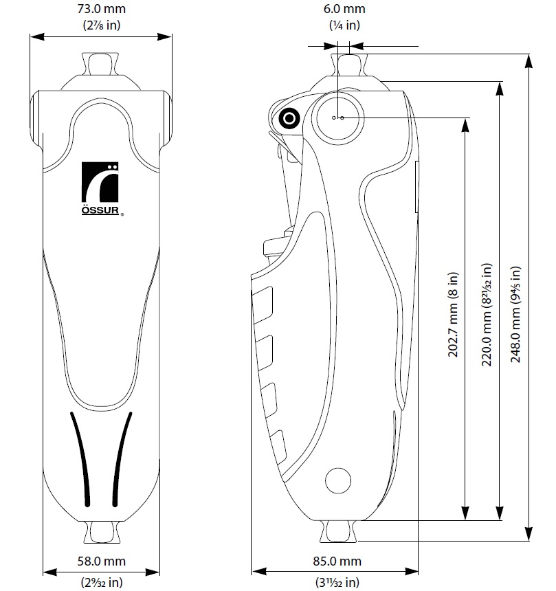 立脚相において油圧による強い抵抗を発生し、膝折れを制御する(イールディング)。遊脚相において、屈曲伸展に対して油圧による抵抗を発揮し、振出しを制御する。膝継手後方のレバーにより、膝を油圧によってロックすることや、立脚相制御を解除することも可能。 |