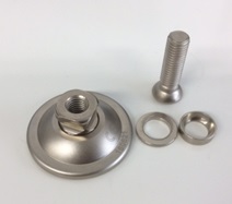 中央に膝継手を固定するための中心ネジが通る雌ネジ穴が開いており、その外側は上部にオスピラミッドがついたアダプタとなっている。膝継手とソケットを接続するためのプレート状のアダプタである。 |