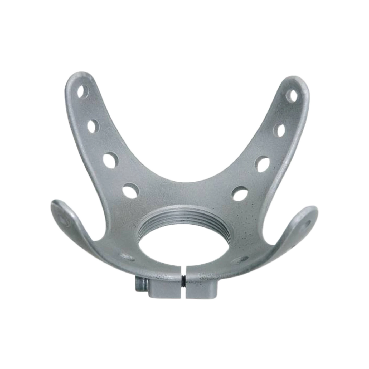 近位にソケットに沿わせる羽を4枚配し、遠位部にピラミッド等の構造部品取付用のメスネジを持つ。 |