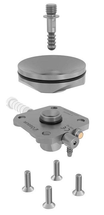 ソケット内に組み込まれる遠位コネクタ、それに接続されるロック本体とアタッチメントピンによるロック機構、陰圧懸垂の排気と吸気のためのUnityコネクタとアウトレットポート、懸垂を解除するためのリリースボタンからなる。ロック本体取付用の皿ネジが付属する。 |