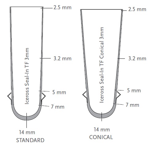 断端末から近位4cmの周径を参照し、ライナーのサイズを選択する(同一サイズか直近を目安とする)。ピン等による懸垂の必要が無いため組立は発生しない。ライナー近位部はソケットトリミングラインより5cm程近位を目安にシリコーントリミング治具でトリミングする。 |
