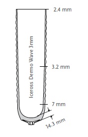 寸法 厚さ :断端末14.3mm、遠位7mm、中間3.2mm、近位2.4mm