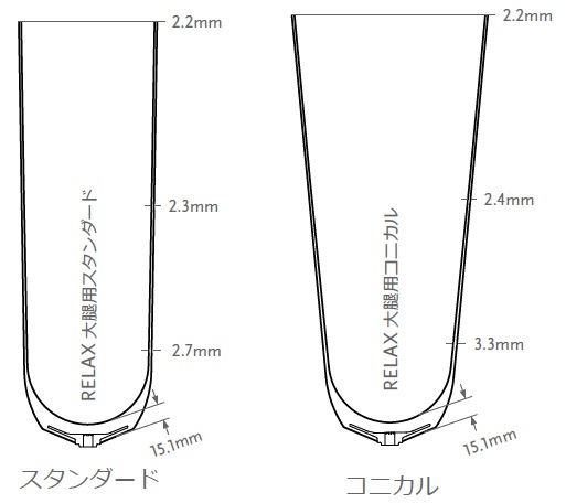 厚さ :遠位端 15.1mm、遠位 3.3mm、中間 2.4mm、近位 2.2mm