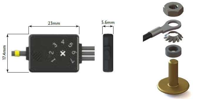 各電極の距離が、ドーム中心間において8〜10mmとなるように内ソケットに配置する。電極と電動義手(i-Limbシリーズまたはi-Digits)のコネクタにケーブルを配線する。 |