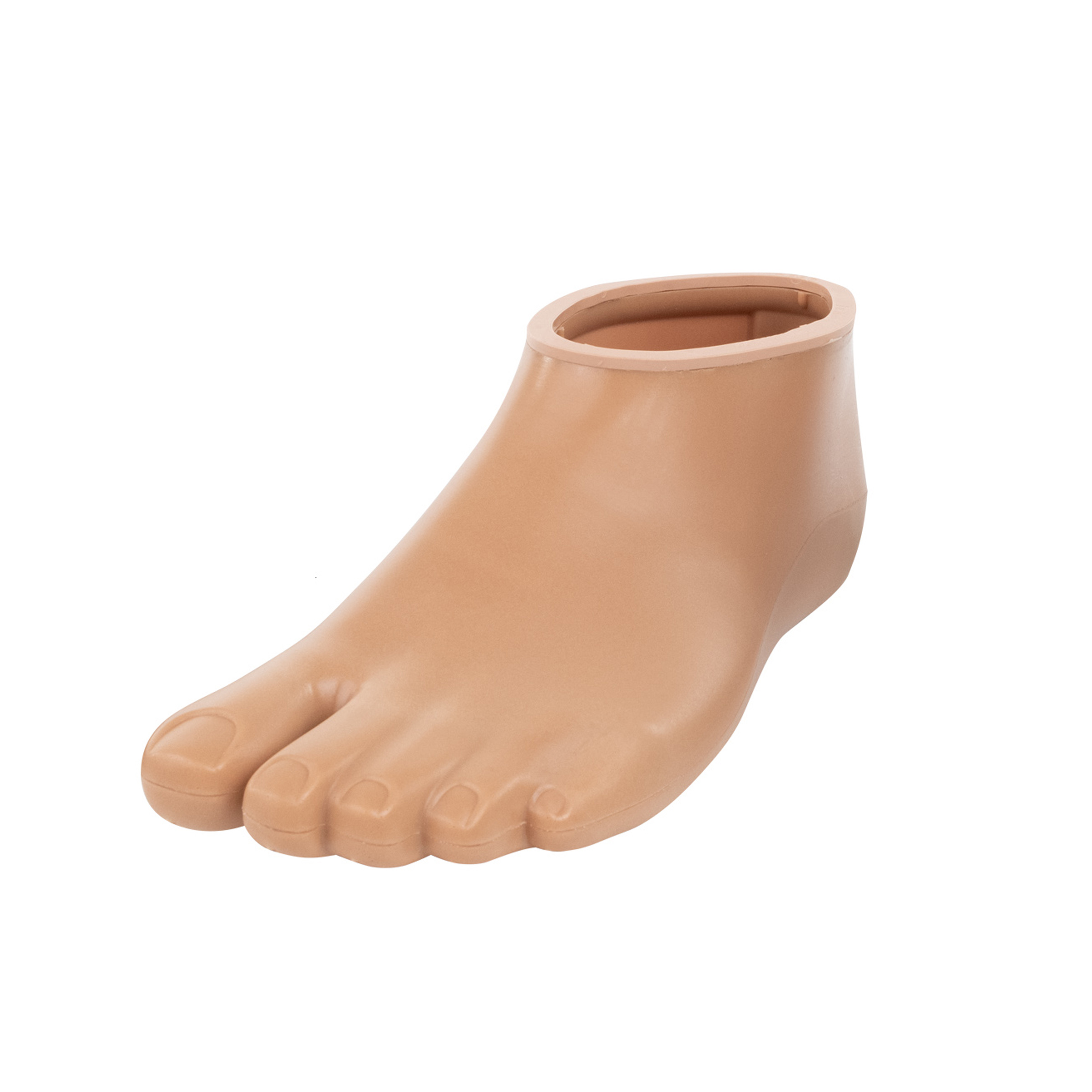 コネクションプレートを取外す。スペクトラソックを履かせた足部本体を、前足部からスライドさせるように挿入するを。この時、フットシェルの指股と、足部本体の指股の形状をあわせて挿入する。本体踵部がフットシェルの時部に嵌るように取付ける。挿入しにくい場合は靴ベラ等を使用する。コネクションプレートを取付ける。 |