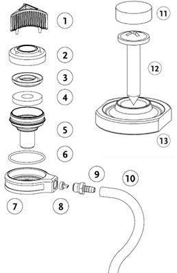 ソケット製作後に取付けの場合、取付位置にタップ穴加工を施し、弓ノコ等でネジ溝の長さを調節する。ソケット製作時にバルブを固定する場合、ソケットインサートを使用してソケットを製作した後、弓ノコ等でネジ溝の長さを調節する。 バルブをソケットに取付け、チューブコネクタの向きを調整して固定する。 ハウジングに取付けていたメンブレンをキャップと交換し、エアフィルターをバルブインナーハウジングに挿入した後、メンブレンをキャップに挿入する。キャップキーでキャップをねじ込む。 |