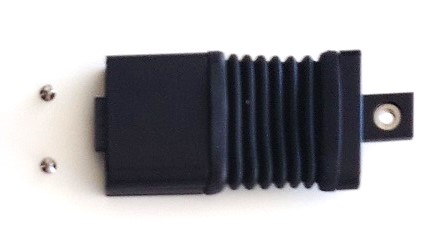 電動義手i-Digitsの制御に必要な配線を接続する端子部分。プロセッサリストバンドと接続することで多様な把持動作やジェスチャーコントロール機能等を使用できる。手関節部に配線部分を配置し、柔軟なベローズ状のカバーで覆うことにより、ソケットを手部で完結することができ、残存する手関節の機能を阻害することなく把持動作を実現できる。 |