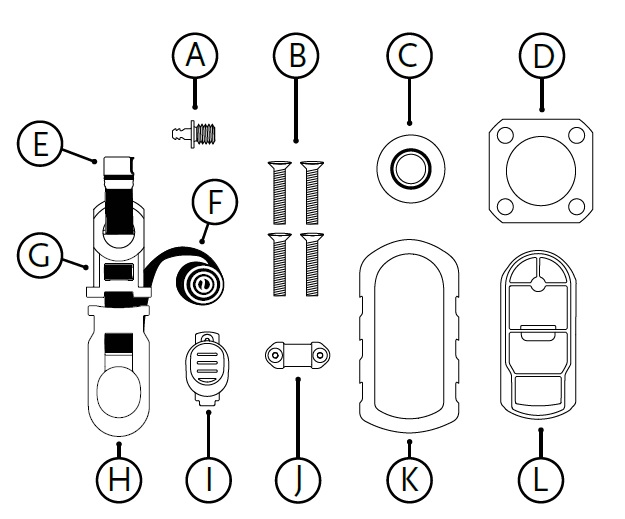 ライナーに取付ける専用アタッチメントピンとロック機構(ロックハウジング、クイックコネクト等)の他、ストラップとソケットに取付ける脱着機構等 関連部品およびダイレクトソケット用ネジが付属する。 |