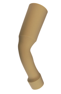 発泡ウレタン製でおおよその脚の形に成形されている。遠位中心に30mm、近位に60mmの骨格部品が通る穴が開いている。膝屈曲角度30度。 |