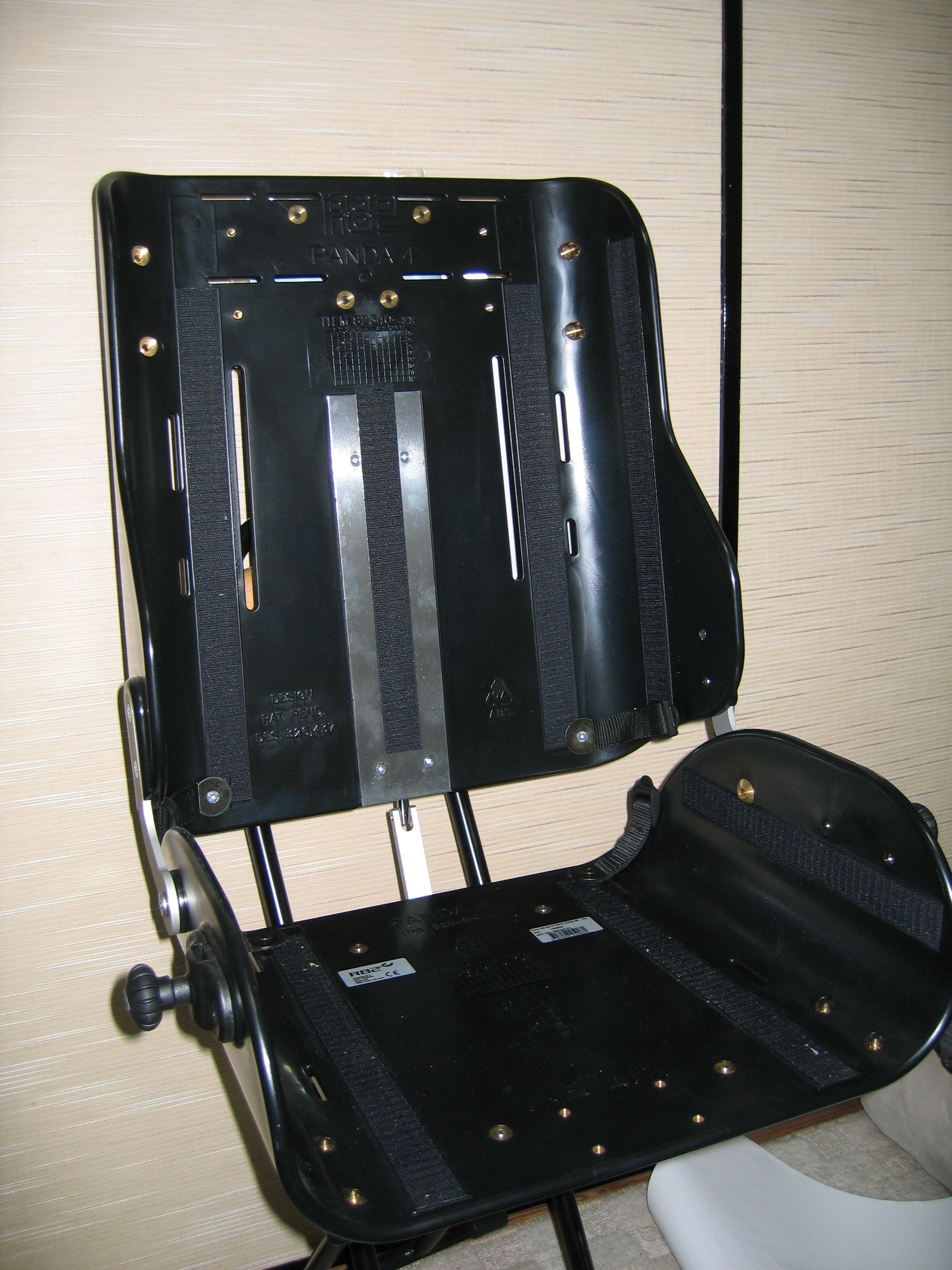 座面・背もたれの連結構造。 無段階背もたれリクライニング機構を装備した。 |