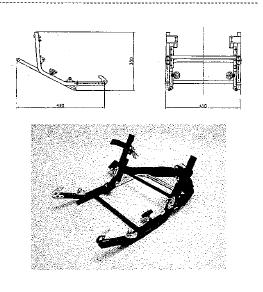ベースになるフレームアダプタ(別途申請)受け部分に後方店と防止フレームを取り付けた構造。 |