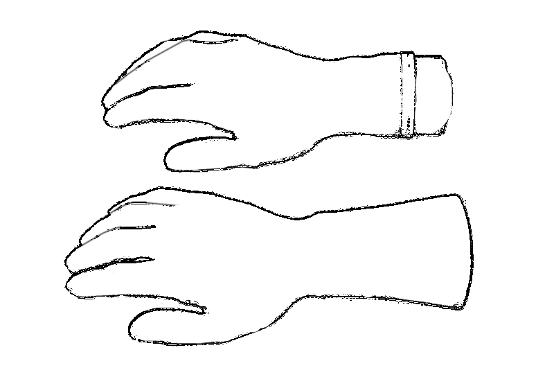塩ビ製装飾手袋に芯、綿、ウレタンフォーム、回転器または木部が内蔵される。