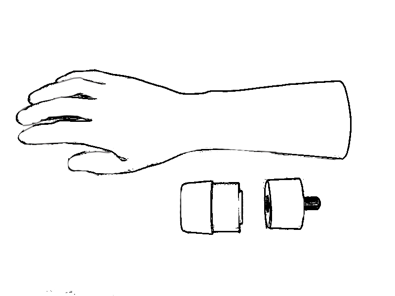シリコーン製装飾手袋に芯、綿、ウレタンフォーム、木部が内蔵される。