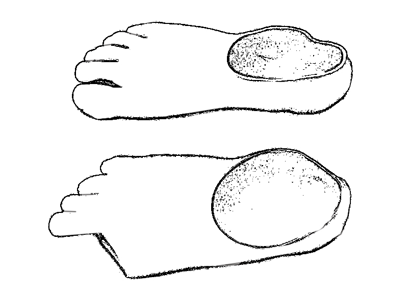 塩ビ製足袋式義足の中にウレタンフォーム、EVA等インサートを追加で内蔵することができる。 |